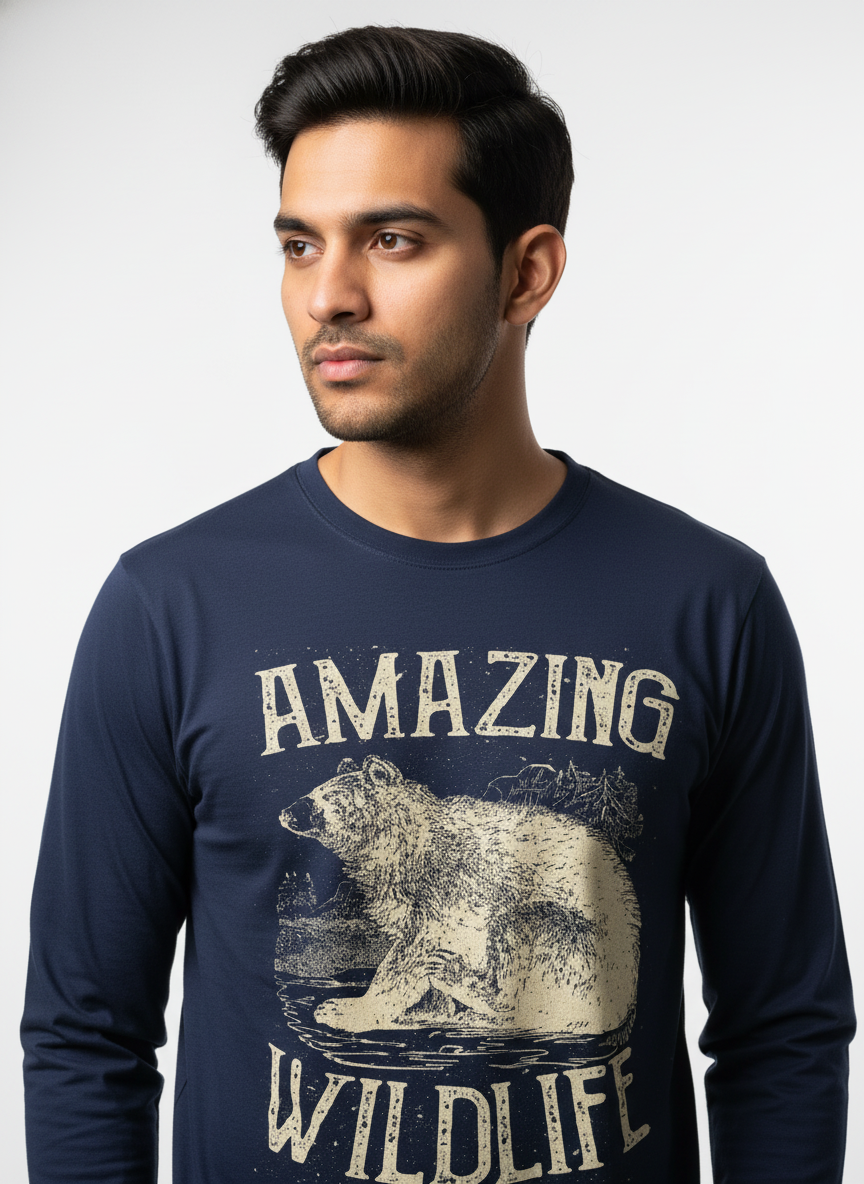 Elevate everyday essentials with our Men’s Full Sleeve T-Shirt—designed for modern comfort, all-season wear, and effortless style. Crafted from 180 GSM super-combed, bio-washed cotton, the fabric offers a soft, premium feel while ensuring durability and long-lasting wear. The regular fit and pre-shrunk material guarantee consistent sizing, and the double-stitched seams with a ribbed neck add structure and resilience. All melange colours are made from a 90% cotton and 10% melange mix, balancing softness with strength. Every piece is made in India and printed with sustainable, water-based inks that are non-toxic, non-hazardous, and environmentally responsible.